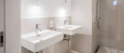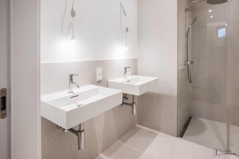 Elegantes Badezimmer mit Feinsteinzeug und Premium-Armaturen