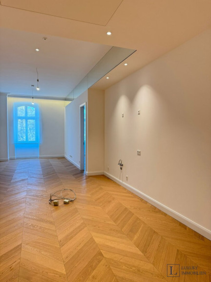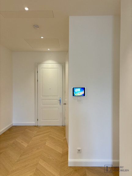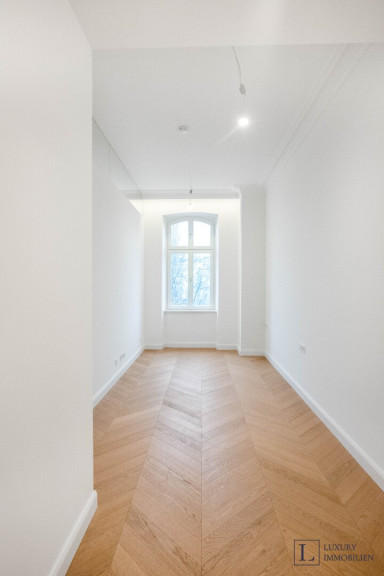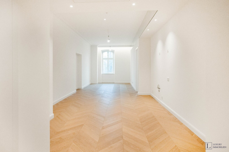 Die Wohnungen im historischen Gebäudeteil zeichnen sich durch hohe Räume, großformatiges Eichenparkett im Fischgrätmuster, stilvolle Sockelleisten und klassische Stuckelemente aus.