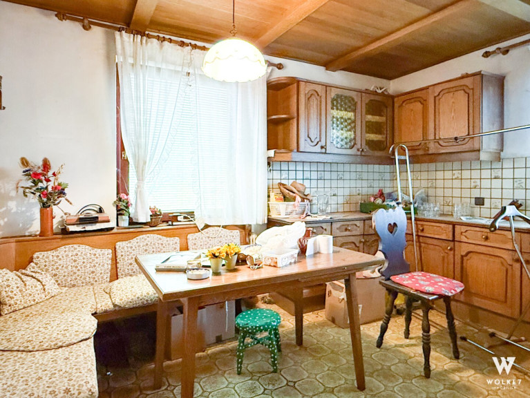 - Obergeschoss: Küche mit großem Essbereich, Schlafzimmer, Bad mit WC, Abstellbereich