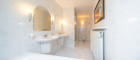 Das elegante Badezimmer mit Fenster, Badewanne, Dusche, WC und Bidet, ist mit edlem Marmor ausgestattet und sorgt für höchsten Komfort.