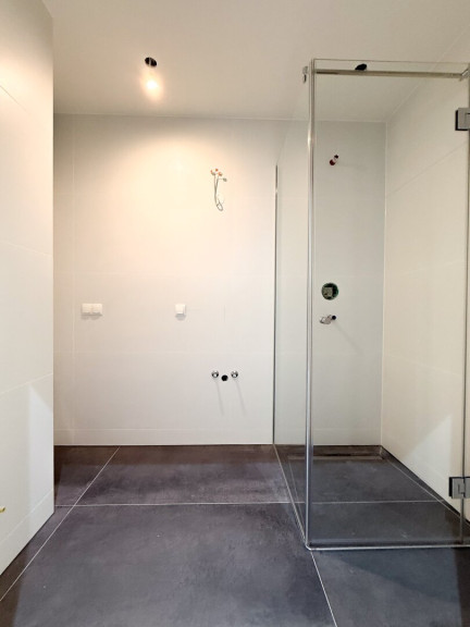 Das Badezimmer ist mit hochwertigen Armaturen und Materialien ausgestattet und fügt sich harmonisch in das moderne Gesamtbild ein. Eine Fußbodenheizung sorgt ganzjährig für ein angenehmes Raumklima.