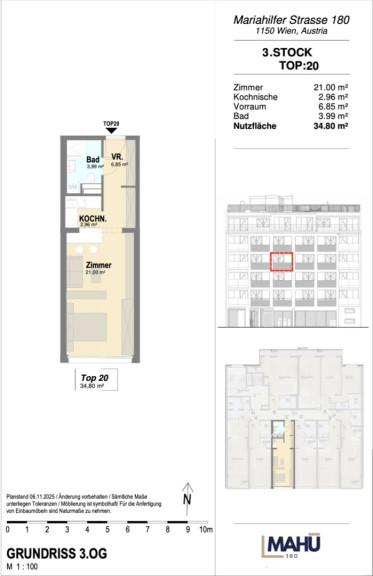 Die hier angebotene Wohnung Top20 mit 35m2 Wohnnutzfläche im 3. Obergeschoss ist eine davon und überzeugt durch ihre hochwertige Ausstattung, moderne Technik und die optimale Eignung für die Kurzzeitvermietung oder einen Beherbergungsbetrieb.