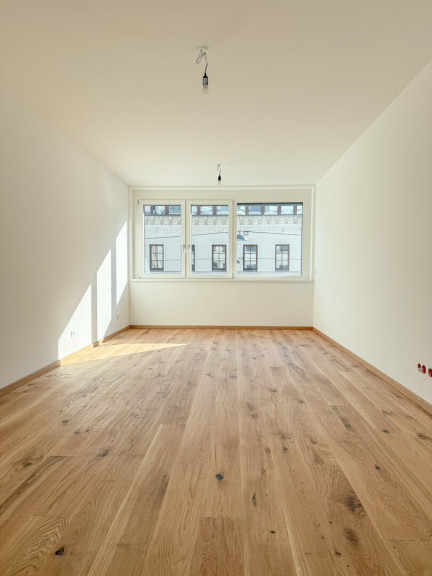 Das 1-Zimmer-Apartment ist effizient geschnitten und bietet ein angenehmes Raumgefühl mit klarer Struktur. Der handgehobelte Echtholzparkettboden verleiht dem Wohnraum eine warme, edle Atmosphäre. Große Fenster mit dreifach Verglasung und elektrischer Außenbeschattung sorgen für Ruhe, Energieeffizienz und hohen Wohnkomfort.