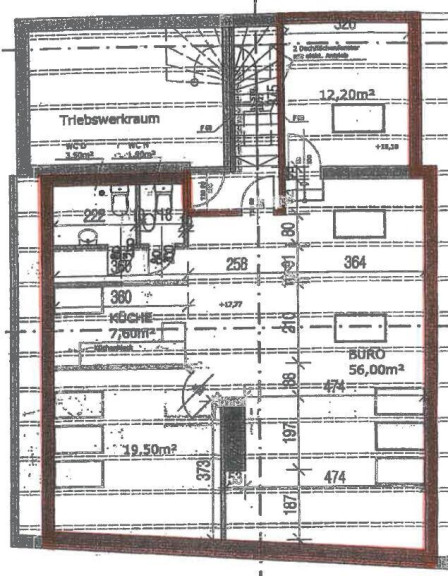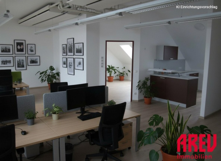 Die Bürofläche selbst bietet Ihnen viel Licht und Platz für kreative Ideen. Sie können den Raum flexibel gestalten, um sowohl Arbeitsplätze als auch Besprechungsräume einzurichten. Die hohen Decken und großen Fenster sorgen für eine angenehme Atmosphäre und tragen zu einem produktiven Arbeitsumfeld bei.