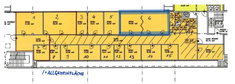 Mit einer großzügigen Fläche von 62,23 m² ist dieses Büro oder diese Praxis vielseitig nutzbar und bietet Ihnen ausreichend Platz für Ihre individuellen Anforderungen. Die durchdachte Raumaufteilung sorgt dafür, dass Sie sowohl ausreichend Arbeitsfläche als auch Rückzugsorte für konzentriertes Arbeiten oder vertrauliche Gespräche zur Verfügung haben.