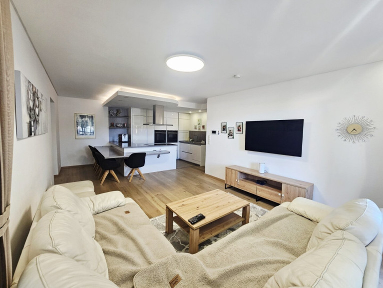 Die Wohnung besticht durch ihre durchdachte Raumaufteilung und lichtdurchflutete Räume, die eine einladende Atmosphäre schaffen. Besonders hervorzuheben ist die großzügige Terrasse, die Ihnen einen perfekten Rückzugsort im Freien bietet. Hier können Sie entspannen, Ihre Nachmittage genießen oder gesellige Abende mit Freunden und Familie verbringen.