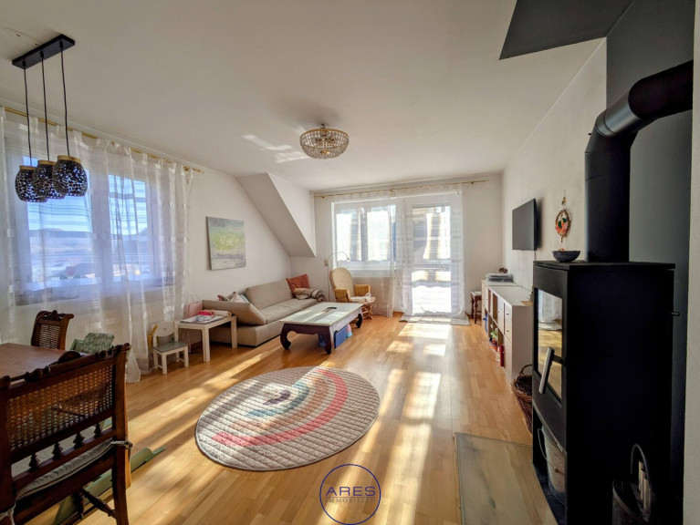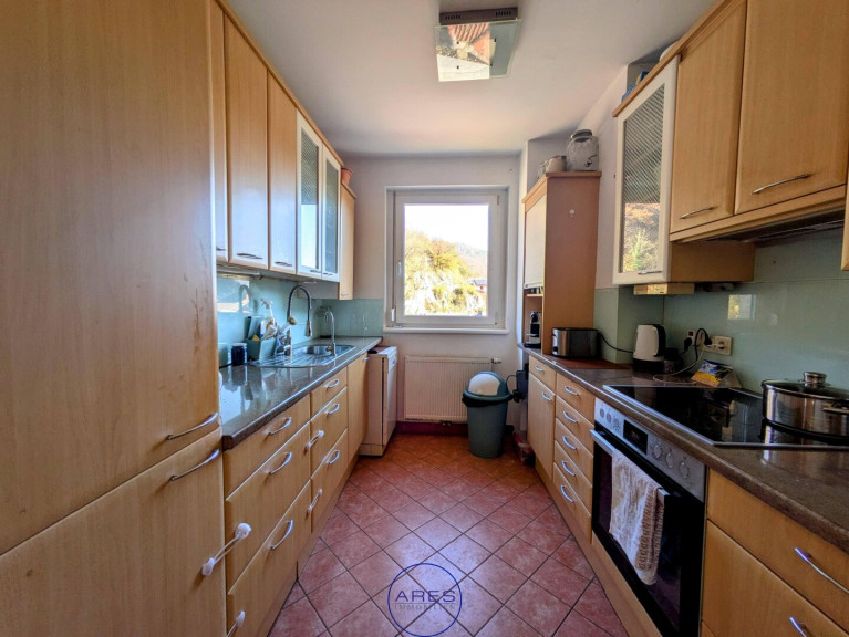 Der sonnige Südbalkon hat eine Glasüberdachung mit Sonnensegel. Die Küche ist voll möbliert (DAN). Das Badezimmer ist mit einer modernen Glasduschkabine mit extra flacher Duschwanne ausgestattet. Der Kaminofen im Wohnzimmer bietet wohlige Wärme.