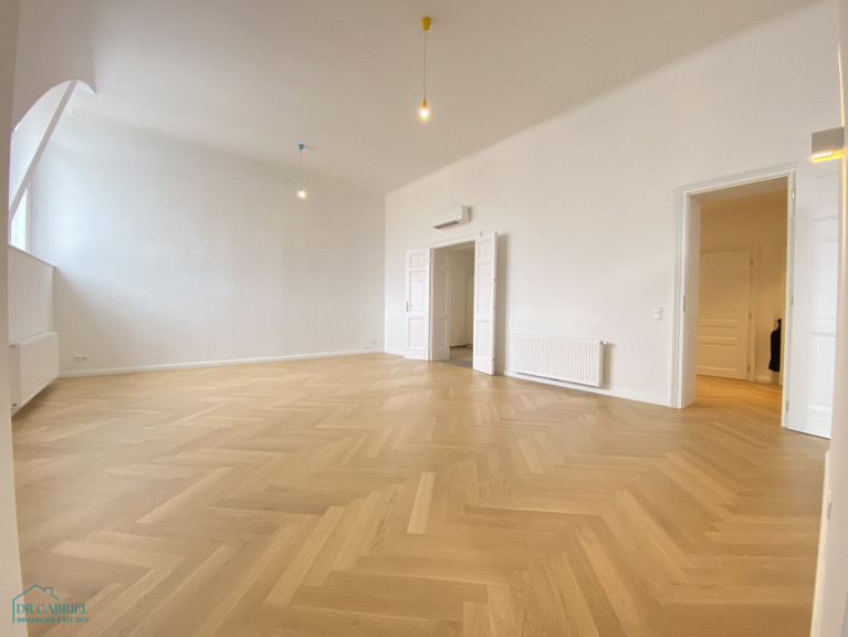 * ein großes Loft-Zimmer mit 3,90m Raumhöhe (Wohnen/Essen - Schlafbereich optisch abgetrennt),