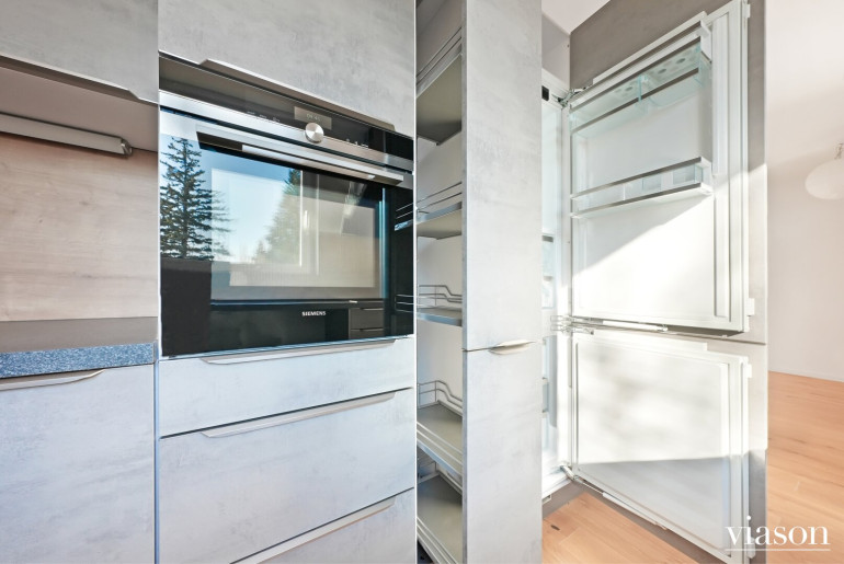 - KÜCHE: Moderne Einbauküche mit Markengeräten (Liebherr, Siemens), Dunstabzug, eine Abwasch, ein großer Geschirrspüler, eine E-Herd (Induktions-Herd), ein hochgestellter Backofen, ein Kühl- und Gefrierschrank. Ein „Apothekerschrank“ in der Küche ist ausziehbar. Eine versteckbare Steckdose mit USB Anschluss direkt in der Arbeitsplatte ist ebenso vorhanden.