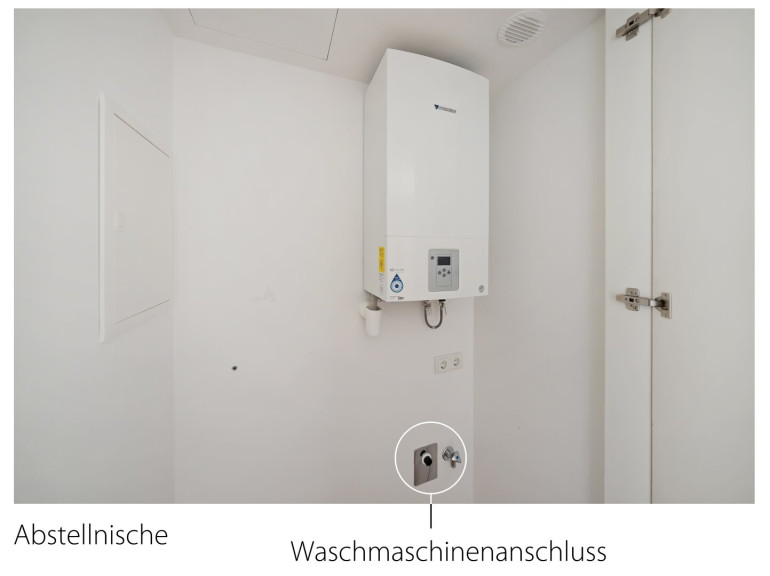 - WASCHMASCHINENANSCHLUSS: Ja – in der Abstellnische unter der Therme