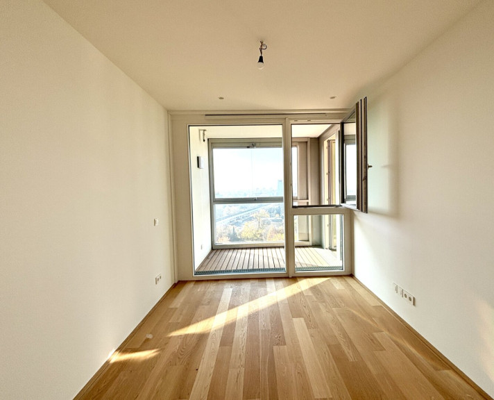 Top 105 ist eine stylische Wohnung für Menschen, die Komfort schätzen. Die Wohnung ist logisch und durchdacht aufgeteilt: vom Vorraum mit Nische für Einbaumöbel gelangt man in das großzügige Wohnzimmer. Die Küche ist durch eine Trennwand vom Vorraum und Wohnbereich abgetrennt. Vom Wohnbereich aus erreicht man die Loggia mit ca. 4,8 m², ideal, um die tollen Ausblicke aus dem 12. Obergeschoss zu genießen. Das separat gelegene Schlafzimmer bietet Ruhe und Komfort. Das Bad mit Dusche befindet sich direkt daneben und macht den Alltag besonders angenehm.