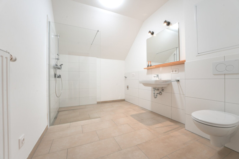 - großes Badezimmer mit Dusche, WC und Waschmaschinenanschluss