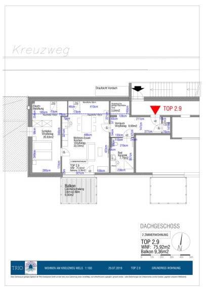 Diese barrierefreie 2 Zimmer Wohnung mit großzügigem Balkon sucht einen neuen Mieter. Geboten wird eine helle und moderne Wohnung mit ca. 76m2 Wohnfläche im obersten Geschoß. Aufgeteilt ist die Wohnung in einen Zentralen Vorraum, Abstellraum, Abstellnische, Badezimmer mit Dusche, großzügiger Wohnbereich inkl. Küche, Schlafzimmer mit Wohnraumlüftung und ein großer Süd-Balkon mit ca. 9m2 rundet das Gesamtpaket ab.