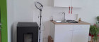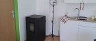 Neue Fenster und neuer Laminatboden, Heizung mit Pelletsofen und elektrisch möglich, Miniküche, WC. Fotos mit Einrichtungsbeispiel.