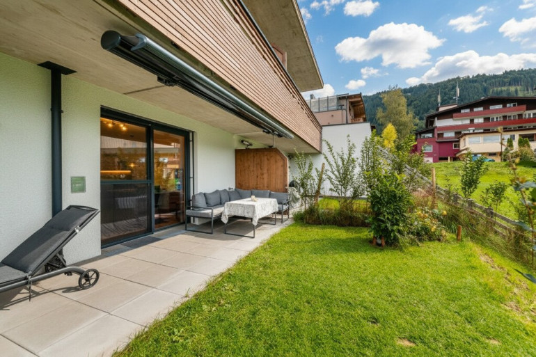 Diese hochwertig ausgestattete 2-Zimmerwohnung mit ca. 51,21 m² Wohnfläche, sonniger West-Terrasse (ca. 17,75 m²) und einem privaten Garten (ca. 43,67 m²) bietet alles, was man sich für ein stilvolles Zuhause in den Bergen wünscht.