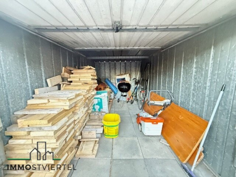 * ein Container mit Garagentor als Lager im Ausmaß von ca. L 4,6 m x B 2,5 m befindet sich derzeit neben dem Haus