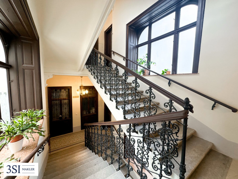 Die Liegenschaft gliedert sich in ein Hochparterre, ein elegantes Mezzanin sowie drei klassische Regelgeschosse. Die architektonische Gliederung und die liebevoll erhaltenen Details spiegeln den Charakter der Wiener Gründerzeit eindrucksvoll wieder.