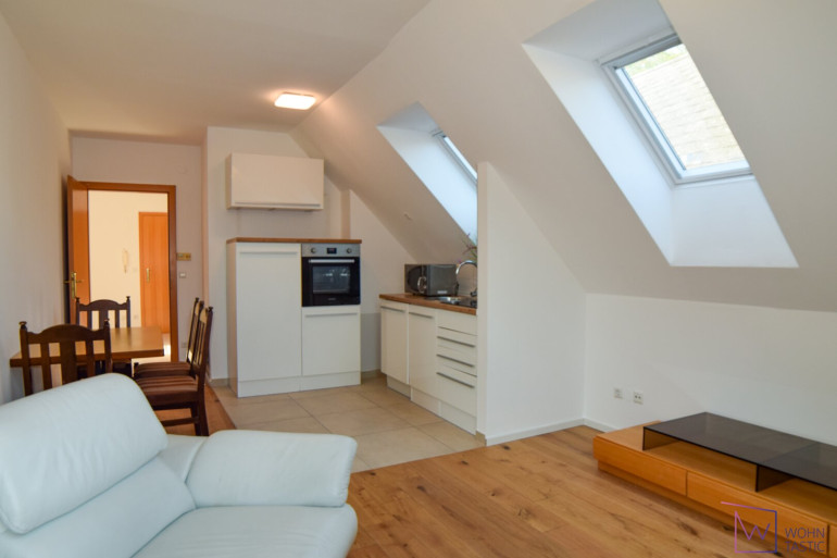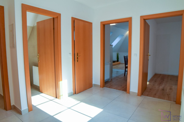 Diese 3-Zimmer-Wohnung mit sehr praktischem Grundriss liegt im 2. Stock eines 1996 errichteten Wohnhauses direkt im Ortskern. Im Jahr 2008 wurden weitere Verbesserungen im Haus durchgeführt. Die ca. 68,2 m² große DG-Wohnung wurde erst kürzlich 2024/25 saniert und mit einer neuen Küche ausgestattet. Unmittelbar nach Betreten der hellen Wohnung fällt der große, zentrale Vorraum mit Blick zum Stift auf. Von hier gelangen Sie nicht nur in alle Nebenräume (Bad, WC, Abstellraum), sondern auch in ein ca. 13 m² großes Zimmer und in die komfortable fast 23 m² große Wohnküche. Die Dachschrägen vermitteln ein besonders gemütliches Flair, wie es nur in DG-Wohnungen zu finden ist. Ein drittes Zimmer mit ebenfalls ca. 13 m² rundet das großzügige Platzangebot dieser ruhigen Wohnung ab. Die Ausstattung ist hochwertig und natürlich verfügen alle Velux-Dachflächenfenster über eine wirksame Beschattung.