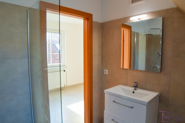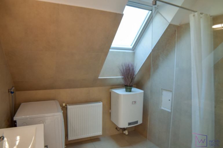 - Badezimmer mit moderner Dusche, Waschtisch & Waschmaschine (ca. 4,6 m²)