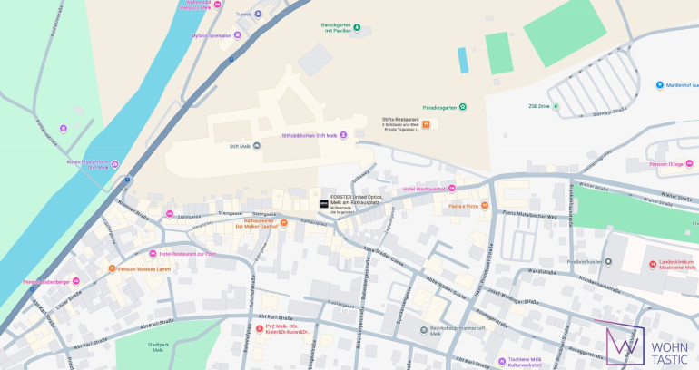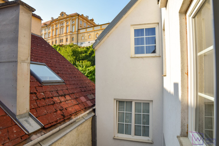Mit fast 6.000 EinwohnerInnen liegt die Stadt Melk idyllisch am rechten Donauufer und bezeichnet sich selbst als das "Tor zur Wachau". Das 1996 errichtete Wohnhaus mit nur 5 Wohneinheiten und einer Gewerbefläche (derzeit kein Betrieb) befindet sich direkt im historischen Stadtkern mit Blick auf den prachtvollen Stift Melk. Die Fußgängerzone bietet eine Vielzahl an Geschäften, Restaurants und Dienstleistungen. Von Ihrer Wohnung erreichen Sie das Landesklinikum, das PVZ oder den Bahnhof jeweils in nur wenigen Gehminuten - zentraler können Sie kaum wohnen! In nur 18 Fahrminuten sind Sie mit der Bahn in der Landeshauptstadt St. Pölten - schneller als mit dem Auto! Die Bahnverbindung nach Wien ermöglicht Ihnen eine komfortable Fahrtzeit von unter einer Stunde. Volkschule, Musik-Mittelschule und Gymnasium sind ebenfalls direkt in der Stadt.