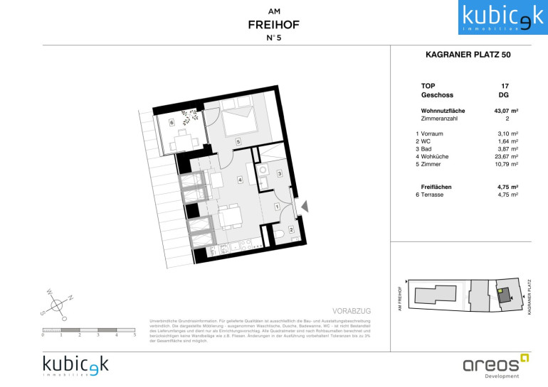 Das Projekt Am Freihof 5 / Kagraner Platz 50 vereint die Vorzüge urbanen Wohnens mit der Nähe zur Natur. Mit exzellenter Verkehrsanbindung, umfassender Infrastruktur und einem vielfältigen Freizeitangebot bietet dieser Standort alles, was modernes, komfortables und nachhaltiges Stadtleben auszeichnet. Ein Ort, an dem sich Lebensqualität, Mobilität und Erholung harmonisch verbinden – ein Zuhause mit Zukunft.