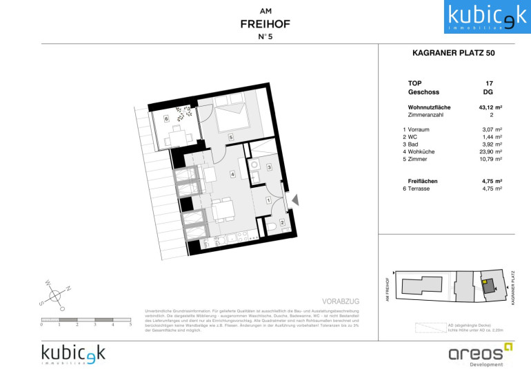 Das Projekt Am Freihof 5 / Kagraner Platz 50 vereint die Vorzüge urbanen Wohnens mit der Nähe zur Natur. Mit exzellenter Verkehrsanbindung, umfassender Infrastruktur und einem vielfältigen Freizeitangebot bietet dieser Standort alles, was modernes, komfortables und nachhaltiges Stadtleben auszeichnet. Ein Ort, an dem sich Lebensqualität, Mobilität und Erholung harmonisch verbinden – ein Zuhause mit Zukunft.