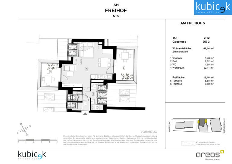 Das Projekt Am Freihof 5 / Kagraner Platz 50 vereint die Vorzüge urbanen Wohnens mit der Nähe zur Natur. Mit exzellenter Verkehrsanbindung, umfassender Infrastruktur und einem vielfältigen Freizeitangebot bietet dieser Standort alles, was modernes, komfortables und nachhaltiges Stadtleben auszeichnet. Ein Ort, an dem sich Lebensqualität, Mobilität und Erholung harmonisch verbinden – ein Zuhause mit Zukunft.