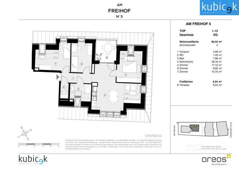 Das Projekt Am Freihof 5 / Kagraner Platz 50 vereint die Vorzüge urbanen Wohnens mit der Nähe zur Natur. Mit exzellenter Verkehrsanbindung, umfassender Infrastruktur und einem vielfältigen Freizeitangebot bietet dieser Standort alles, was modernes, komfortables und nachhaltiges Stadtleben auszeichnet. Ein Ort, an dem sich Lebensqualität, Mobilität und Erholung harmonisch verbinden – ein Zuhause mit Zukunft.