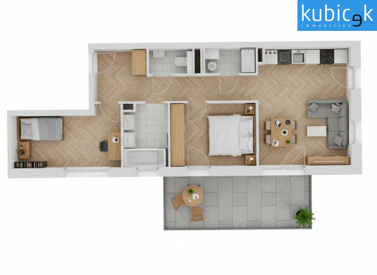 Das helle Wohnzimmer bildet den zentralen Wohnbereich. Die offene, integrierte Küche fügt sich harmonisch in den Raum ein und schafft eine einladende Atmosphäre für gemütliche Stunden zu Hause. Vom Wohnzimmer gelangen Sie direkt auf den südostseitigen Balkon mit 13,95 m², der Ihnen einen privaten Freiluftbereich bietet. Hier können Sie entspannen, die Sonne genießen oder gesellige Momente mit Familie und Freunden verbringen. Der Balkon bietet zudem ausreichend Platz für stilvolle Möbel und Pflanzen, die Ihren persönlichen Stil unterstreichen.