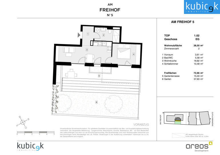 Das Projekt Am Freihof 5 / Kagraner Platz 50 vereint die Vorzüge urbanen Wohnens mit der Nähe zur Natur. Mit exzellenter Verkehrsanbindung, umfassender Infrastruktur und einem vielfältigen Freizeitangebot bietet dieser Standort alles, was modernes, komfortables und nachhaltiges Stadtleben auszeichnet. Ein Ort, an dem sich Lebensqualität, Mobilität und Erholung harmonisch verbinden – ein Zuhause mit Zukunft.