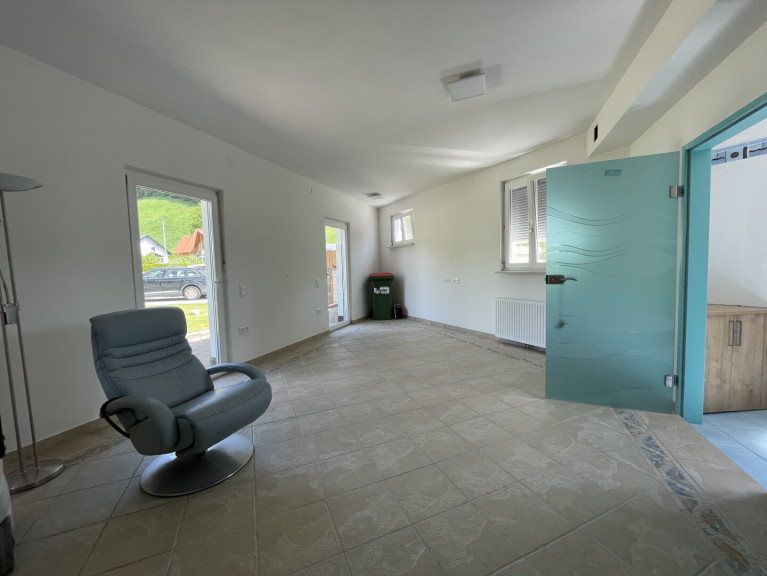 Der großzügige Souterrain- und Lagerbereich ist über eine überdachte Zufahrt erreichbar. Auf dieser Ebene wäre der Ausbau für zusätzliche Wohneinheiten gegeben.