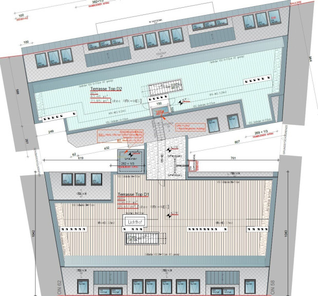 Die beigelegte Einreichplanung sieht einen Dachgeschossausbau mit 4 Wohneinheiten vor, wodurch eine Wohnfläche von ca. 279 m² erzielt werden könnte. Zusätzlich ist zu jeder Wohneinheit eine Dachterrasse geplant.