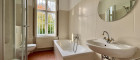 - Badezimmer mit Waschbecken, Dusche, Badewanne, WC