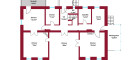 - 1 Durchgangszimmer/Wohnbereich (mit dem Vorraum und den beiden Schlafzimmern verbunden)