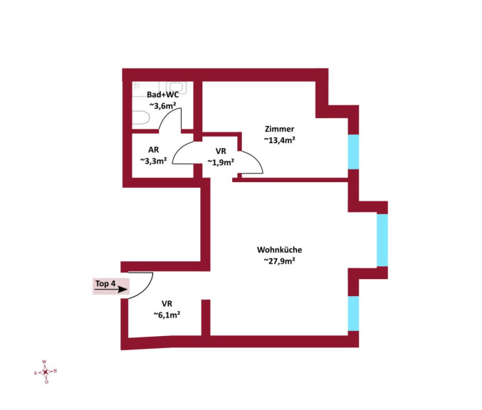 Top 8: ca. 40 m² WNFL, monatliche Miete beträgt 812,-- Euro (inkl. Betriebskosten, 10% Umsatzsteuer)