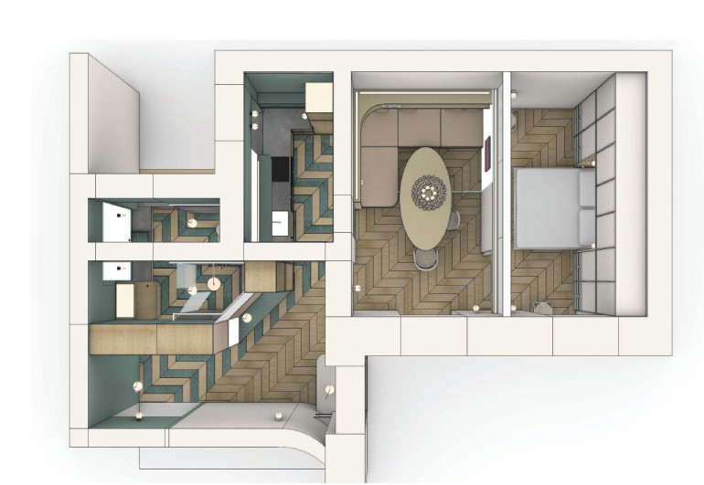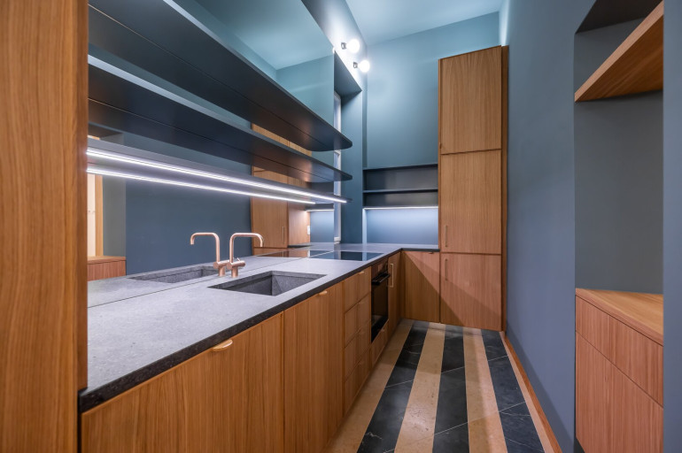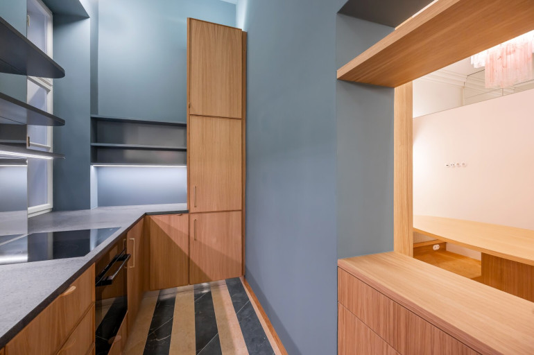 Maßgefertigte Tischlerarbeiten in der gesamten Wohnung (Küche, Einbauschränke, Möblierung)