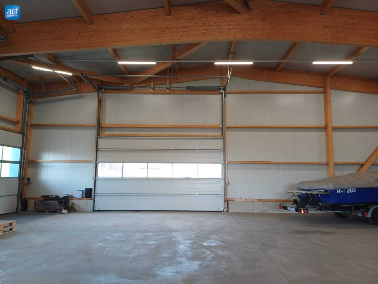 Die Halle bietet eine großzügige Fläche von rund 600 m². Sie ist mit einem Dach sowie Außenwänden aus Trapezblechen ausgestattet, die über eine Dämmung und Dampfbremse verfügen.
