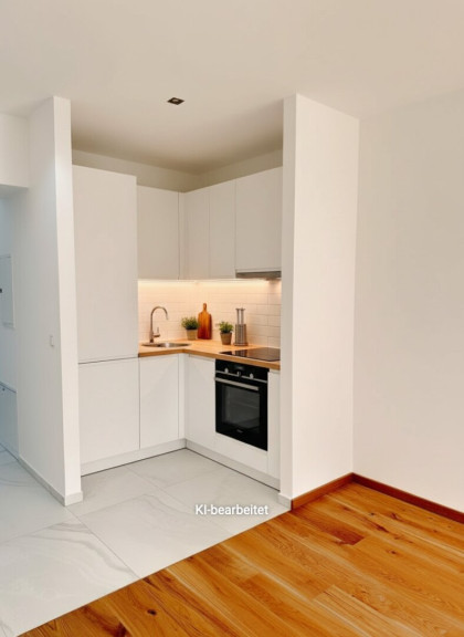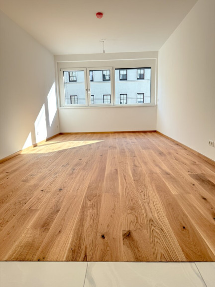 Das 1-Zimmer-Apartment ist effizient geschnitten und bietet ein angenehmes Raumgefühl mit klarer Struktur. Der handgehobelte Echtholzparkettboden verleiht dem Wohnraum eine warme, edle Atmosphäre. Große Fenster mit dreifach Verglasung und elektrischer Außenbeschattung sorgen für Ruhe, Energieeffizienz und hohen Wohnkomfort.