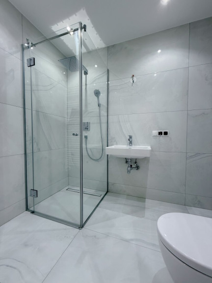 Das Badezimmer ist mit hochwertigen Armaturen und Materialien ausgestattet und fügt sich harmonisch in das moderne Gesamtbild ein. Eine Fußbodenheizung sorgt ganzjährig für ein angenehmes Raumklima.