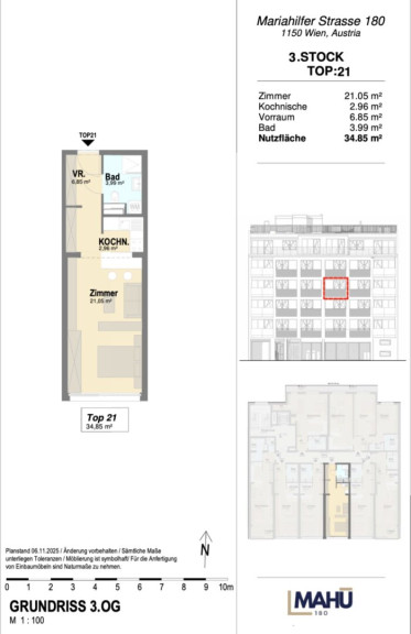 Die hier angebotene Wohnung Top 21 im 3.OG mit 34,85m2 Wohnnutzfläche ist eine davon und überzeugt durch ihre hochwertige Ausstattung, moderne Technik und die optimale Eignung für die Kurzzeitvermietung oder einen Beherbergungsbetrieb.