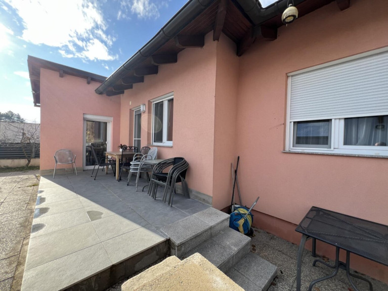 Dieser 2010 errichtete, vielfältig nutzbare Bungalow mit ca. 145m² Wohnfläche und ca. 582m² Grundstücksfläche, gelangt zum Verkauf. Er bietet 5 Zimmer, 3 Bäder und WCs, eine Küche, eine Terrasse sowie eine großzügige Garage mit rund 30m² und noch 3 weitere Stellplätze für PKWs. Das Haus wurde aktuell auf 2 Wohneinheiten mit separaten Wohnbereichen getrennt (es verfügt auch über 2 separate Eingänge), kann aber mit sehr wenig Aufwand auch wieder in eine große Wohneinheit umgebaut werden. Beheizt wird das Objekt mittels Pellets mit Fußbodenheizung. Der 3 Tonnen fassende Pelletstank befindet sich am Spitzboden des Hauses. Im Aussenbereich befinden sich 2 Regenwassertanks die eine bequeme/kostengünstige Bewässerung des Gartens ermöglichen. Weiters verfügt das Haus über eine Satschüssel, Aussenrollläden und großteils Fliegengitter und auch Glasfaser wird in Kürze verfügbar sein.