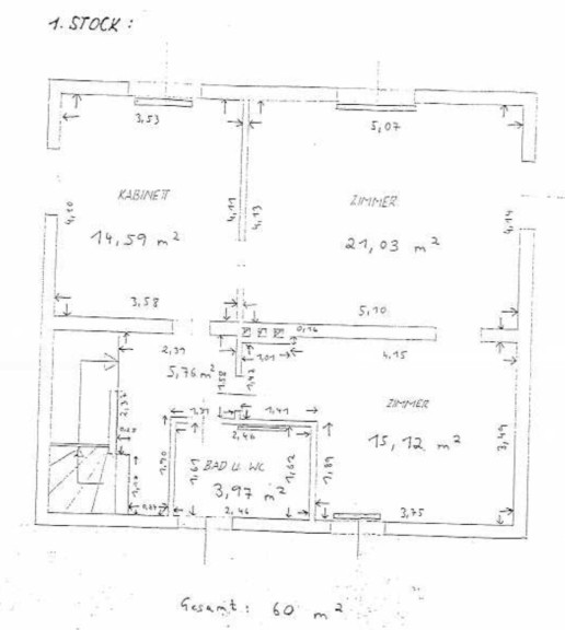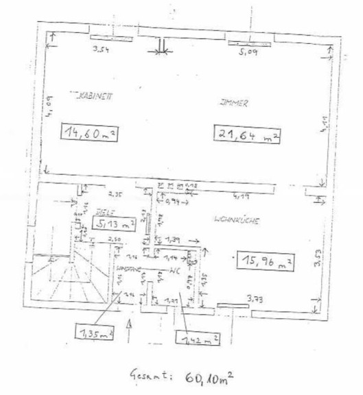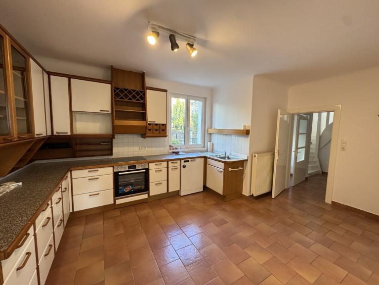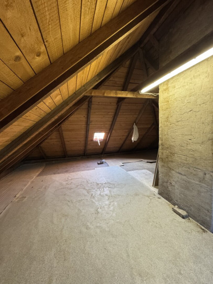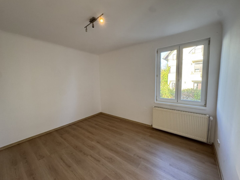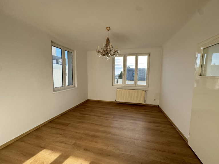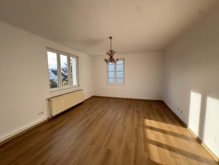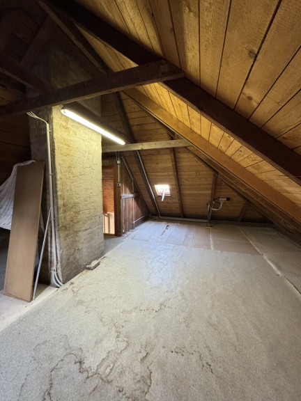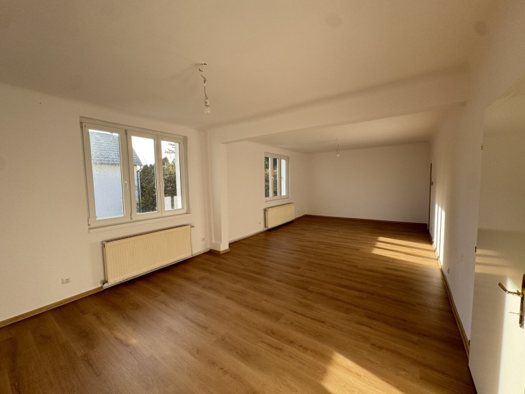 Im Erdgeschoss befindet sich ein großzügiger Wohnbereich mit viel Tageslicht. Die separate Küche ist geräumig und bietet Platz für einen Esstisch. Ein Vorraum und ein Gäste WC ergänzen diese Ebene. Eine Treppe führt in das Obergeschoss mit drei weiteren Zimmern und einem Tageslichtbad mit Badewanne. Das Haus wurde 2012 umfassend saniert und 2025 erneut renoviert.