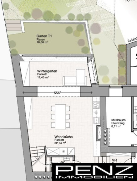 Die Ausstattung überzeugt durch zeitlose Eleganz und hohe Qualität: Edler Eichenparkett in Fischgrätverlegung, großformatige Feinsteinzeugfliesen, stilvolle Altbautüren in Weißlack sowie moderne Sanitärausstattung von Duravit sorgen für ein harmonisches Wohngefühl. Viele Einheiten verfügen über private Freiflächen – ob Balkon, Loggia, Garten oder Dachterrasse – und bieten damit zusätzlichen Raum zur Entfaltung. Die zentrale Lage ermöglicht eine hervorragende Anbindung an den öffentlichen Verkehr sowie fußläufige Erreichbarkeit von Kultur, Gastronomie und Naherholung entlang der Donau.
