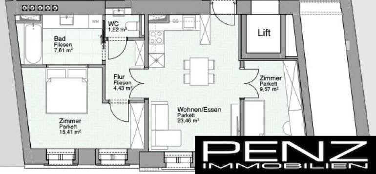 Die Ausstattung überzeugt durch zeitlose Eleganz und hohe Qualität: Edler Eichenparkett in Fischgrätverlegung, großformatige Feinsteinzeugfliesen, stilvolle Altbautüren in Weißlack sowie moderne Sanitärausstattung von Duravit sorgen für ein harmonisches Wohngefühl. Viele Einheiten verfügen über private Freiflächen – ob Balkon, Loggia, Garten oder Dachterrasse – und bieten damit zusätzlichen Raum zur Entfaltung. Die zentrale Lage ermöglicht eine hervorragende Anbindung an den öffentlichen Verkehr sowie fußläufige Erreichbarkeit von Kultur, Gastronomie und Naherholung entlang der Donau.