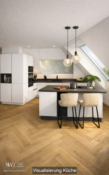 Da sich die Wohnung aktuell im Erstbezug befindet, können Böden und Bäder noch individuell gewählt und auf Ihren persönlichen Stil abgestimmt werden - Ihr Penthouse wird damit nicht nur neu, sondern wirklich Ihres. Die Visualisierungen zeigen eine mögliche hochwertige Ausführung.
