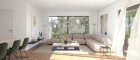 - Großflächige Aluminiumfenster mit 3-Scheiben-Isolierverglasung und Sonnenschutz