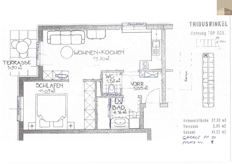 Parkplätze: 1 Tiefgaragenplatz + 1 Außenstellplatz