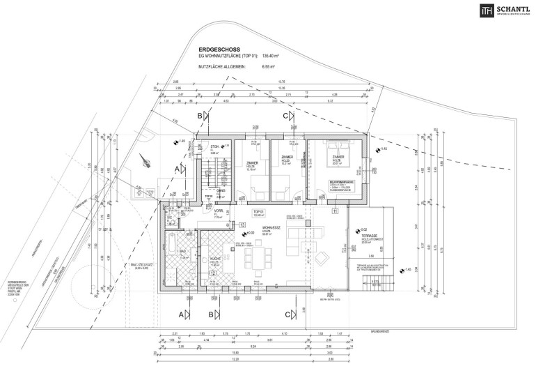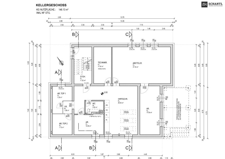 + Wohnfläche: ca. 135,40m² + Terrasse: ca. 20,05m² + Garten: ca. 250m² + Kellerabteil + Stellplatz