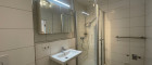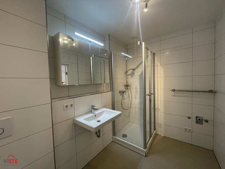Großzügiges Badezimmer mit Dusche und Waschmaschinenanschluss