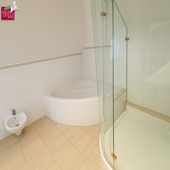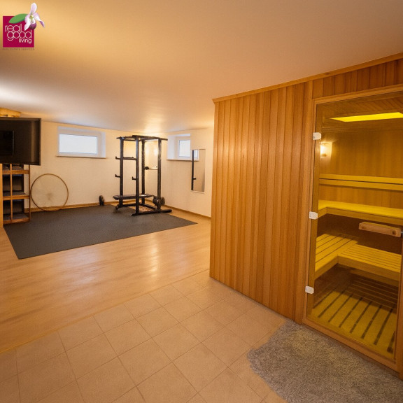 Fliesen, Parkett, Etagenheizung, Fußbodenheizung, Einbauküche, Bad mit Fenster, Badewanne, Dusche, Kabel/Satelliten-TV, Garage, Sauna, Swimmingpool
